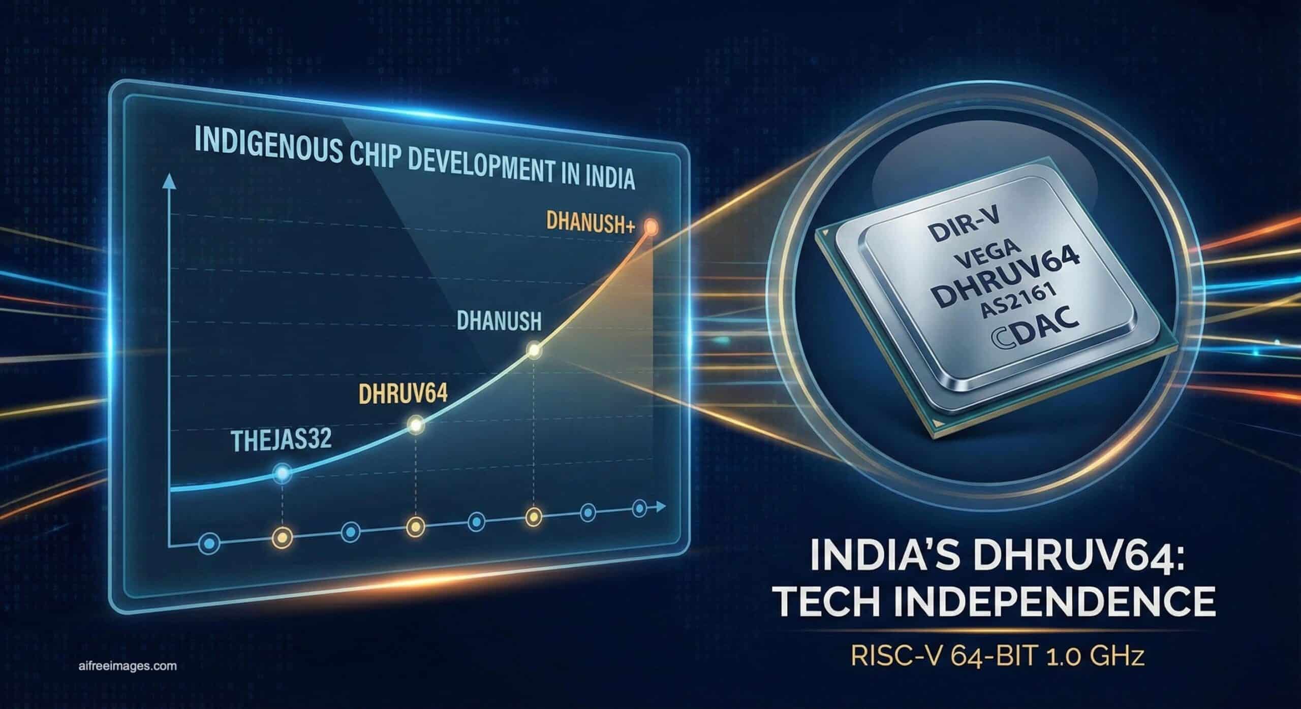 Una de las partes más concretas del anuncio es cómo enmarca DHRUV64 dentro del programa Digital India RISC-V (DIR-V). Según el comunicado, DHRUV64 sería el tercer chip fabricado bajo este programa: primero THEJAS32 (fabricado en Silterra, Malasia), después THEJAS64 (fabricado en Semiconductor Lab, SCL Mohali, ya en India) y ahora DHRUV64, mientras se desarrollan variantes DHANUSH64 y DHANUSH64+ como próximos pasos.